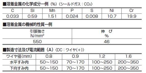 【特徴】ステンレス鋼(SUS304)の溶接に使用します。炭素を低く抑えているので、溶接のままでも耐粒界腐食性が優れています。